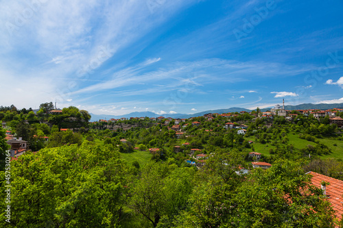 トルコ サフランボルの旧市街の街並みと丘の上に建つウル・モスク