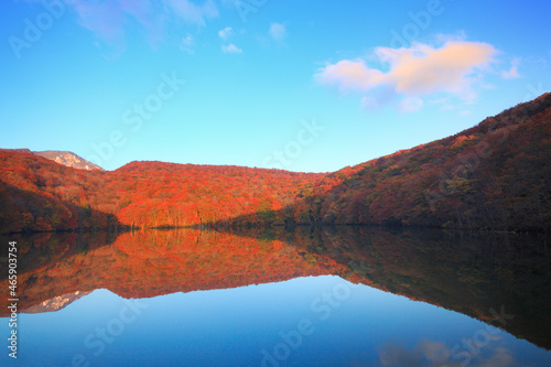 蔦沼の朝の紅葉の水鏡, 日本,青森県,十和田市