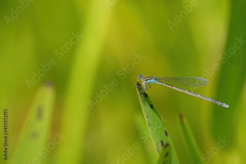 のんびりくつろぐきれいなブルーのアオイトトンボ