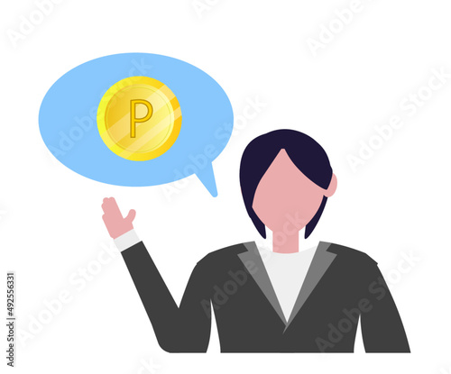 ポイントの説明をする女性。スーツ イラスト