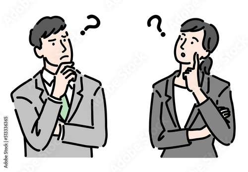 悩んでいるスーツを着た男女