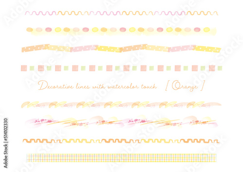 波、光、タイル、テープの赤系水彩タッチ装飾ライン素材