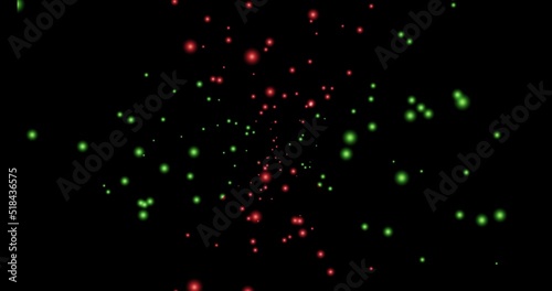赤色と緑色の細かい光が回転しながら広がっていくアニメーション素材(黒背景) 星 銀河 輝き クリスマスカラー