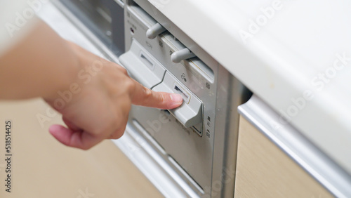 ガスコンロのスイッチを入れる女性(家事・料理・主婦)