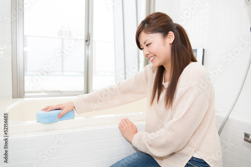 お風呂を掃除する女性