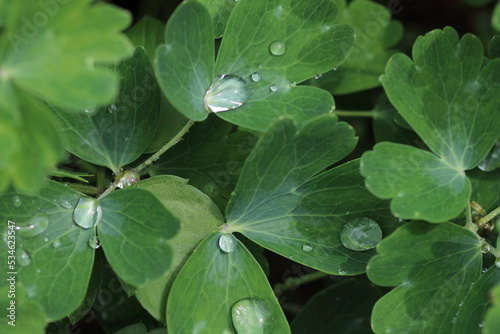 葉っぱの朝露 水滴コロコロ太陽の反射