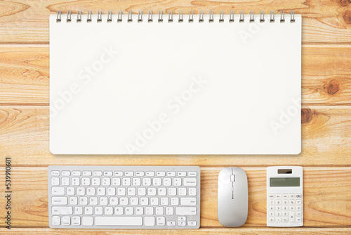 無地のノートがある机の上の俯瞰撮影