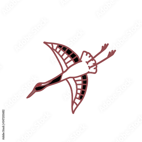 羽ばたく鶴のノスタルジックなイラスト