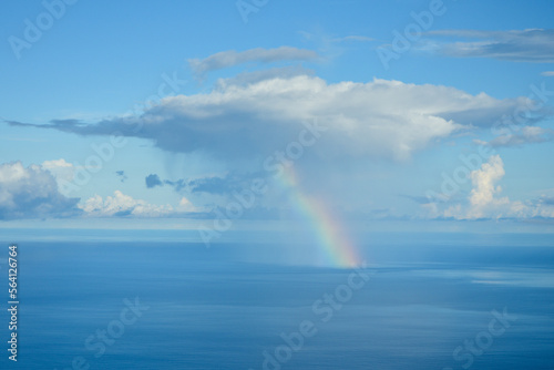 飛行機から眺める美しい海にかかる虹の風景