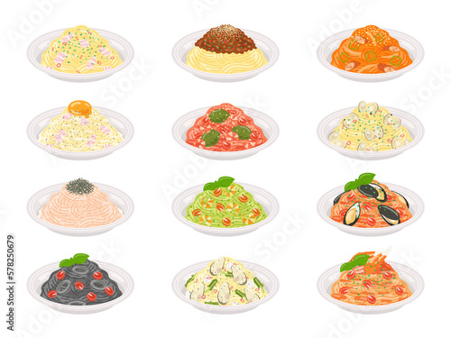 さまざまな種類のパスタのイラストセット