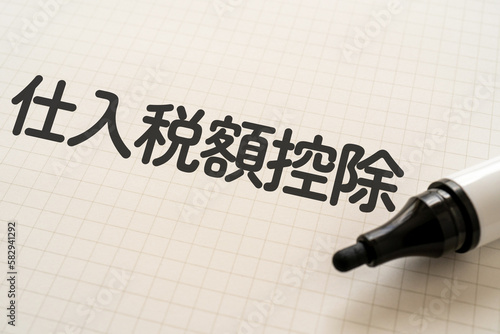 仕入税額控除と書かれたノートとマーカー