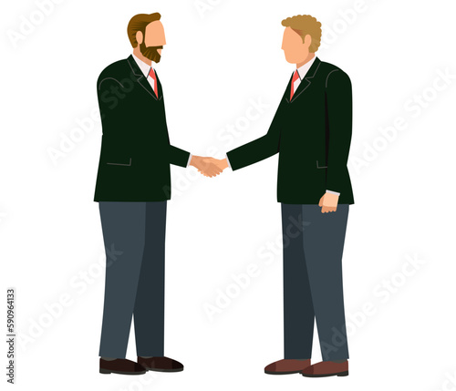 握手をするスーツ姿のヒゲの男性とスーツ姿の白人男性のイラスト ビジネスイメージ商談