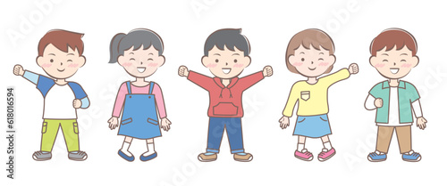長袖の服を着た笑顔の子供たち 秋 春 全身