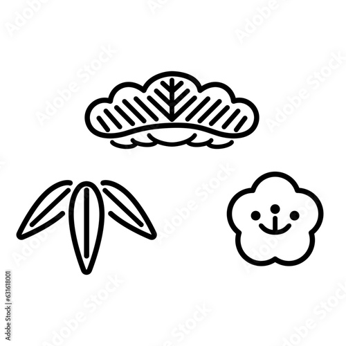 松竹梅のデザイン(線画)