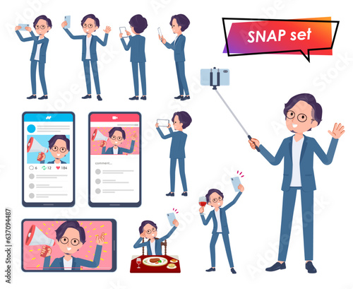 スマホで撮影するビジネス男性のセット
