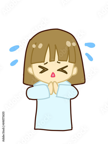 手を合わせて謝る女の子