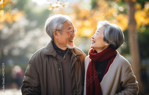 公園で笑う老夫婦