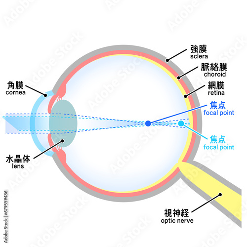 近視正乱視の眼球のイラスト