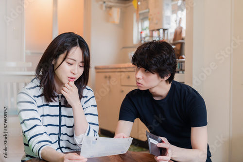 請求書明細を見て値上げに苦しむ若い夫婦