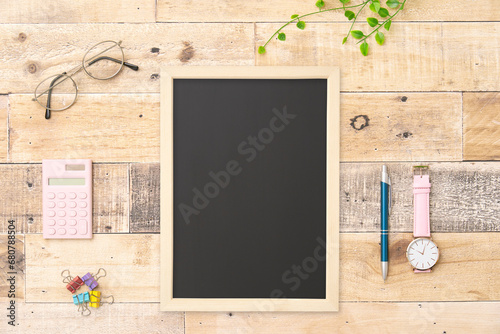 デスクの上の黒板 俯瞰撮影
