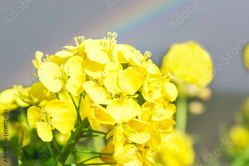 菜の花のバックに虹