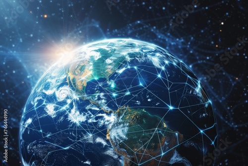 地球・世界とネットワークのイメージ(テクノロジー・データ通信・スマートシティ・ビッグデータ)