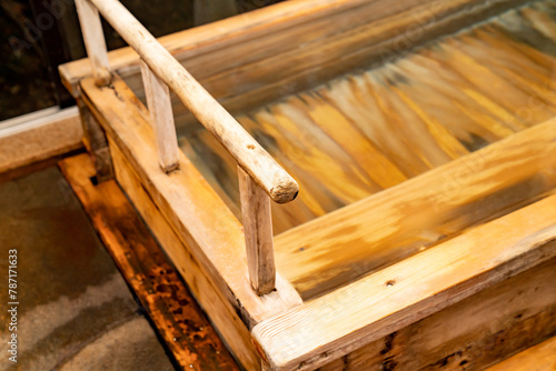 温泉付き客室にある天然温泉風呂の写真。温泉のイメージ。