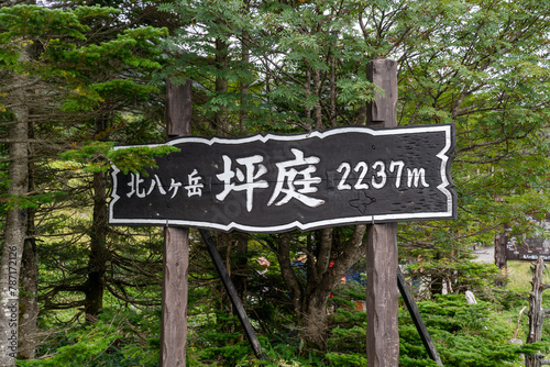 日本の長野県の観光地「八ヶ岳」の写真。看板の写真。