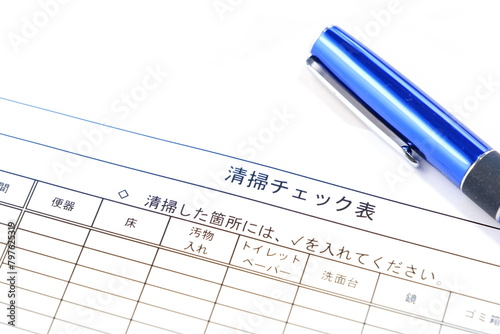 清掃業でトイレの清掃後、清掃チェック表を記入する