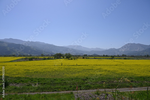 長野県飯山市の菜の花公園の菜の花公園畑の景色