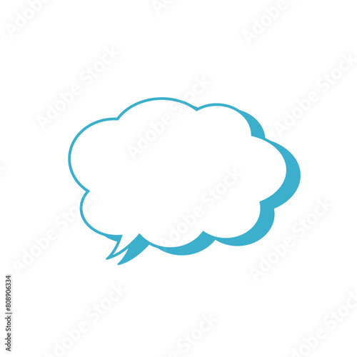 シンプルな水色雲形吹き出し_主線あり_影あり_左向き単品