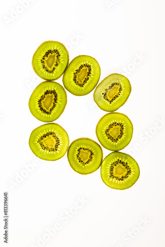 흰색 테이블에 얇게 썬 키위
