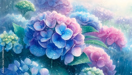 雨の日の紫陽花 背景 壁紙