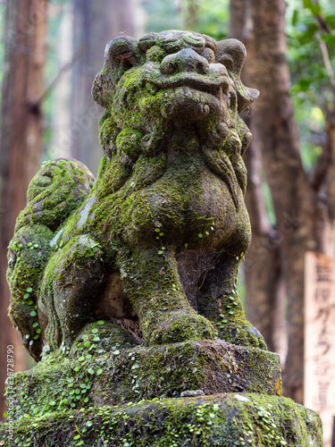苔が生えた龍穴神社の狛犬