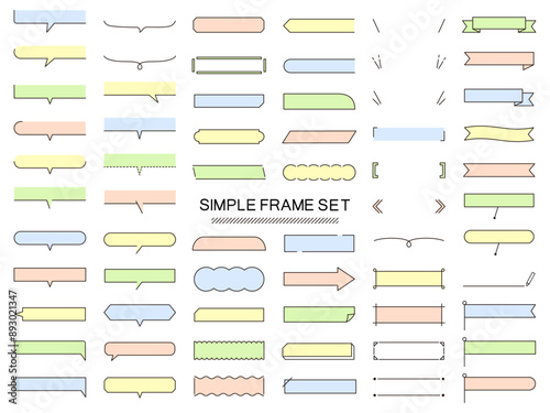 シンプルなフレームのベクターイラストセット 枠 吹き出し リボン 旗 線 線画