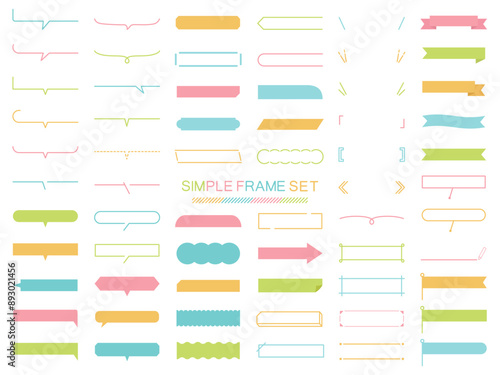 シンプルなフレームのベクターイラストセット 枠 吹き出し リボン 旗 線 線画