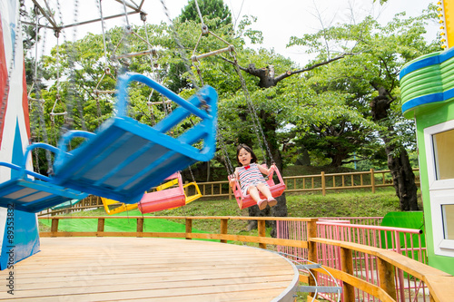 回転ブランコに乗った女の子