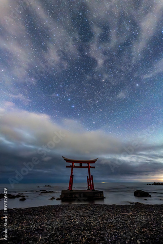 北海道 初山別 金比羅神社 鳥居 夕日 星空