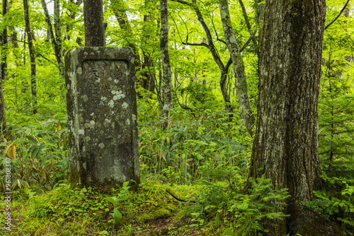 日本 長野県長野市にある戸隠神社の奥社参道沿いにある高妻山神鏡碑