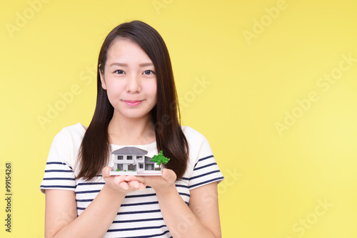 住宅模型を持つ女性