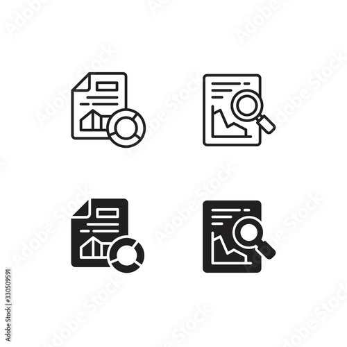 File and document search icon. Vector illustration on white isolated background with magnifier loupe. Premium Vector
