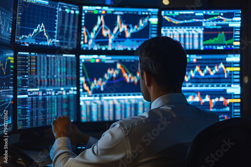 Financial Analyst at Work: Navigating Complex Data Across Multiple Screens