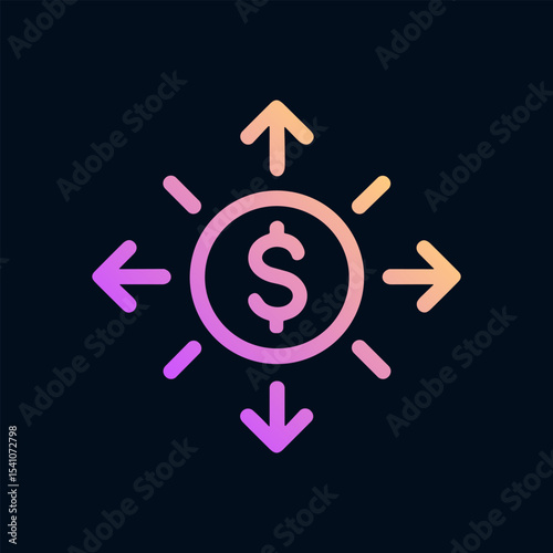 Financial flows depicted with dollar sign. Icon symbol illustration