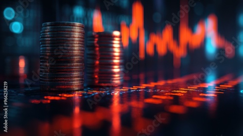 Financial Success: Coin Stacks on a Stock Market Chart