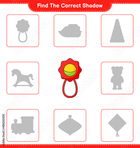 Find the correct shadow. Find and match the correct shadow of Baby Rattle. Educational children game, printable worksheet, vector illustration