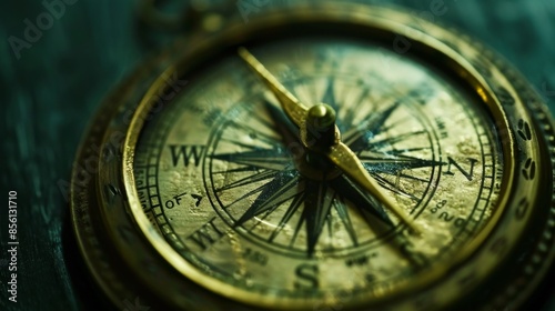 Finding the True North: Close-up of a Compass Needle Pointing North, Symbolizing New Beginnings and Fresh Start in Life