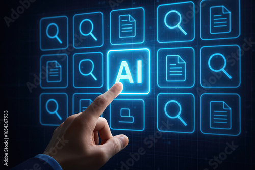 Finger Touching AI Icon on a Digital Screen with Other Icons artificial intelligence technology