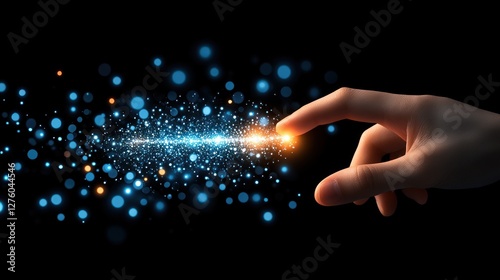 Finger Touching Glowing Energy Stream Abstract Image
