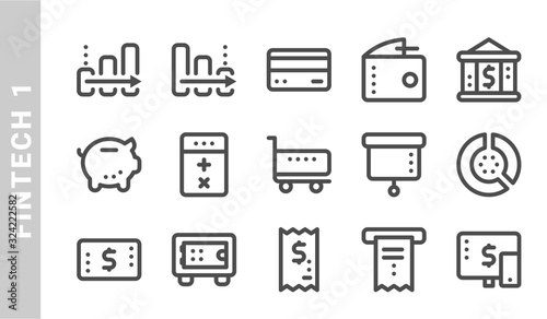 fintech 1 icon set. Outline Style. each made in 64x64 pixel