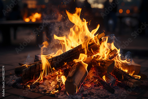 fire burning in a fireplace, burning wooden logs with hot flames of fire